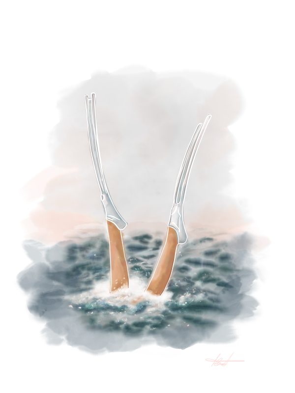 A peaceful underwater scene showing a diver’s fins, symbolizing freedom and happiness. Printed on high-quality archival paper. Personalize it with a sentence that speaks to you.