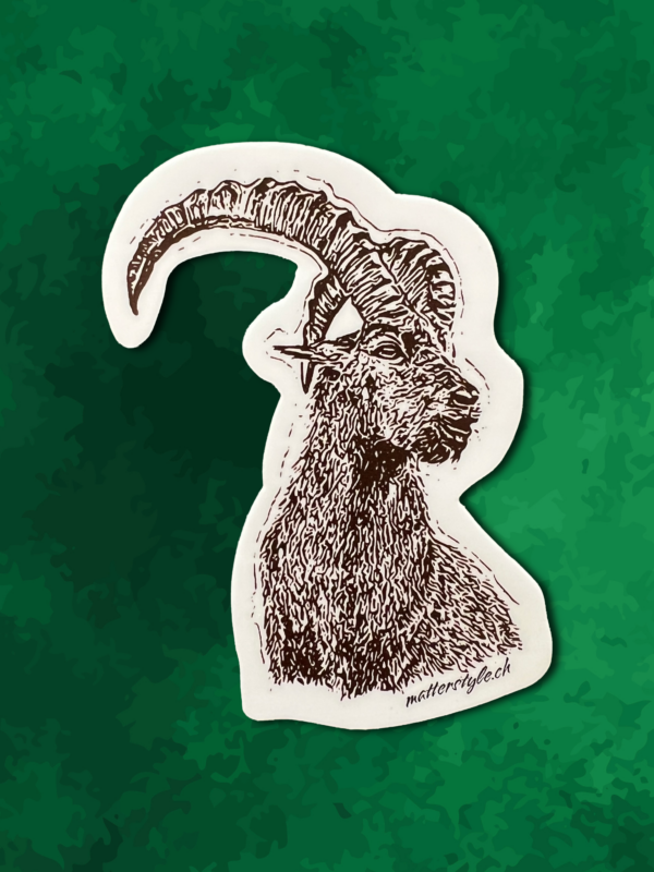 Details • 7.5 × 4 cm• Vinyl sticker• Holographic finish• Swiss alpine design• Matter Style