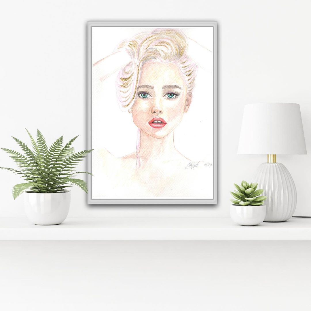 This is an original and limited* portrait drawing of Lady wearing the Matterhorn Earrings of the Matter Style Jewelry collection. Click on the numbers in the top left corner of the first product image to see short videos of the creation process.